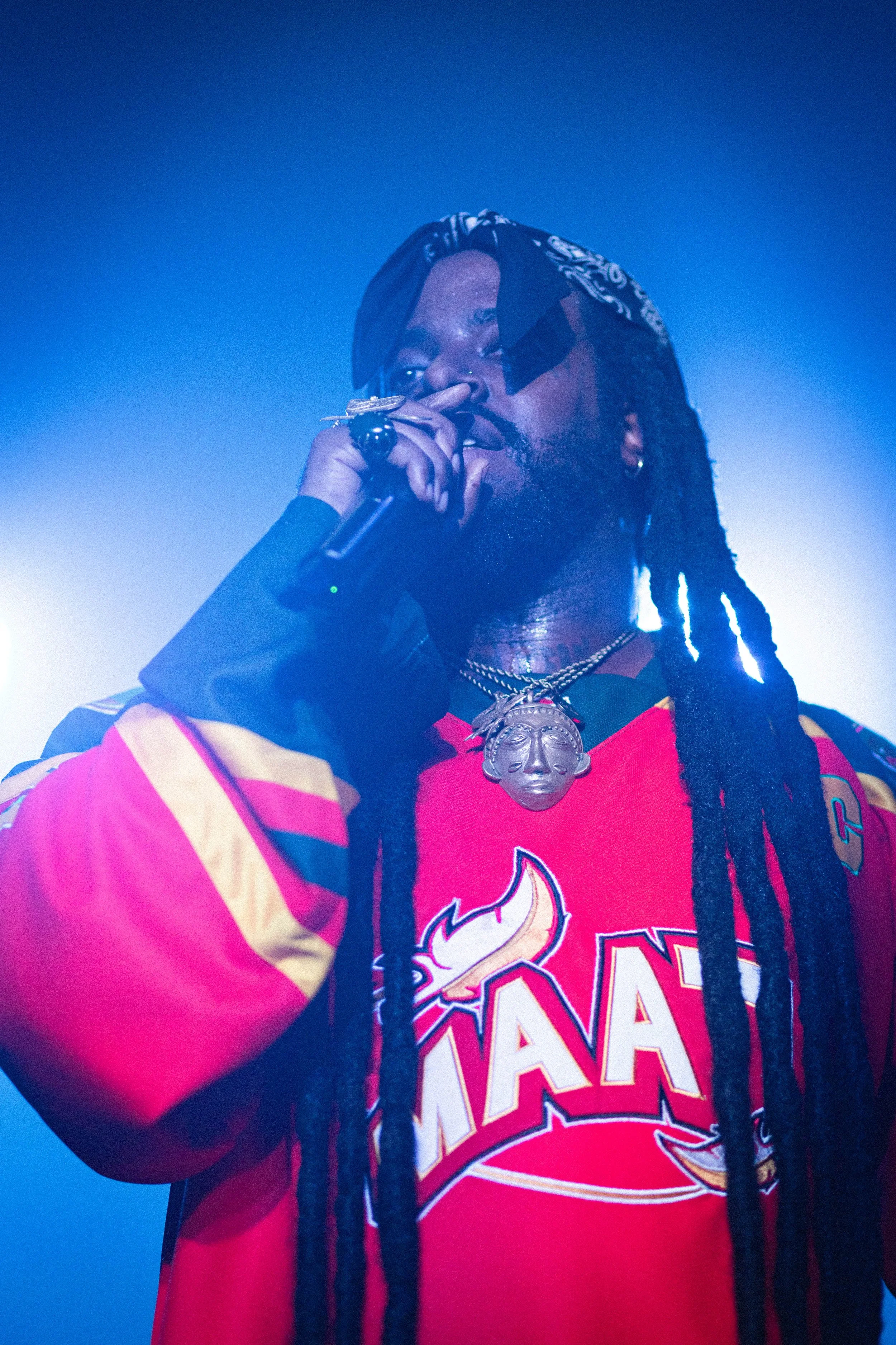 Walking into Aisle 5, the vibe was already special. I got there during AJ McQueen’s meet and greet, and it felt intimate, like every interaction truly mattered. One fan brought him a hand-painted jacket with his portrait on the back — a beautiful gesture that showed how deeply his art inspires. Then a young aspiring rapper, Nu-born, stepped up and spit a verse right on the spot. Instead of just showing him love and moving on, AJ invited him to perform later during the set. That moment set the tone for the night — this wasn’t just a concert, it was community.